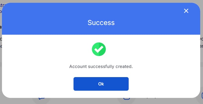 5. The account has been create and is ready to use. As the Admin User you can switch between accounts by clicking on the account from the drop down