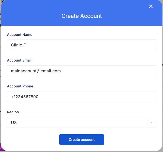 3. Enter the Account Name and Region. Do not change the account email or phone number