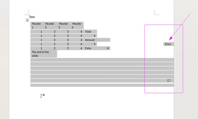 - Click anywhere on a table to highlight it, revealing hidden rows or columns. Even blank cells at the end of a table can affect how the document converts.