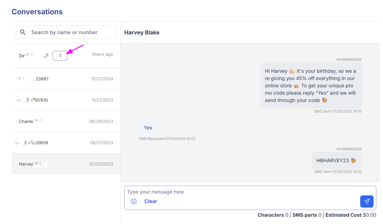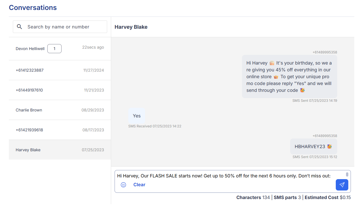 Australia Only: If you send SMS using a Shared System Number or Sender ID, replies will not appear in Conversations.