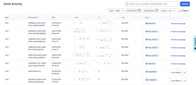 Easily track and manage all SMS activity within your Notifyre account, including sent, received, and scheduled SMS messages.
