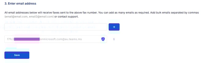 - Complete steps 4 and 5 for any additional fax receive number(s) you have added to your Notifyre account for which you would like to receive faxes to Microsoft Teams®.