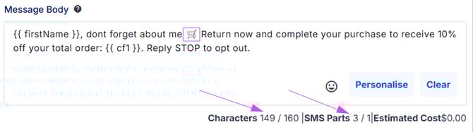💡 Avoid emojis or special characters if you want to keep your message within 1 part.