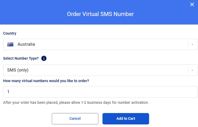 Note: Notifyre currently supports Australian virtual SMS numbers and 10DLC numbers in the United States.